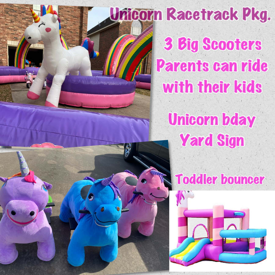 2-Sugar Rush/Unicorn racetrack (32ft circular) w/ 4 motorized Unicorns